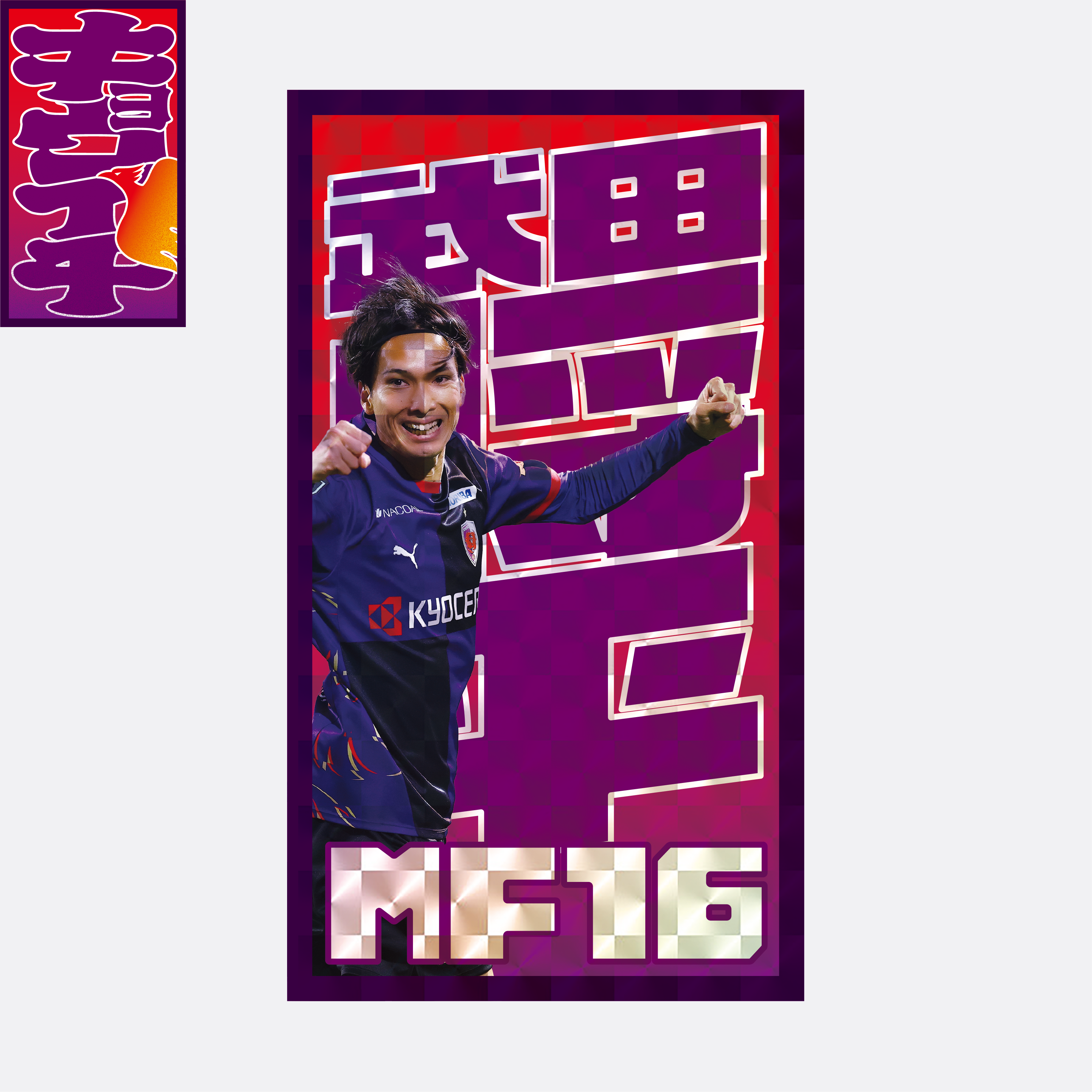 サンガサポが選んだ5/7キョウイチ選手グッズ! <配送のみお選びください> 5/7(水)町田戦のキョウイチ、福田選手のグッズが登場! 福田選手のキョウイチデザインのステッカーです。 キョウイチの記念にぜひ。 サイズ:50mm×90mm ◆受注販売期間 5/12(月)23:59まで ◆購入方法 ・配送のみでの対応商品となります。ご了承くださいませ。 ・配送の場合は6月3週目頃の予定です。 ・一部店頭での販売を実施しますが、数に限りがある&店舗でのみの販売となりますので、受注販売期間での購入をおすすめいたします。