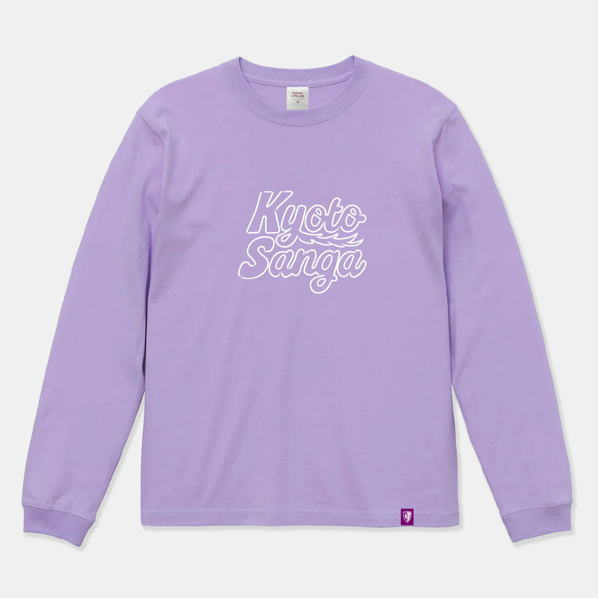 筆記体風の「Kyoto Sanga」ロゴを胸元に大きくあしらったロングスリーブTシャツ。