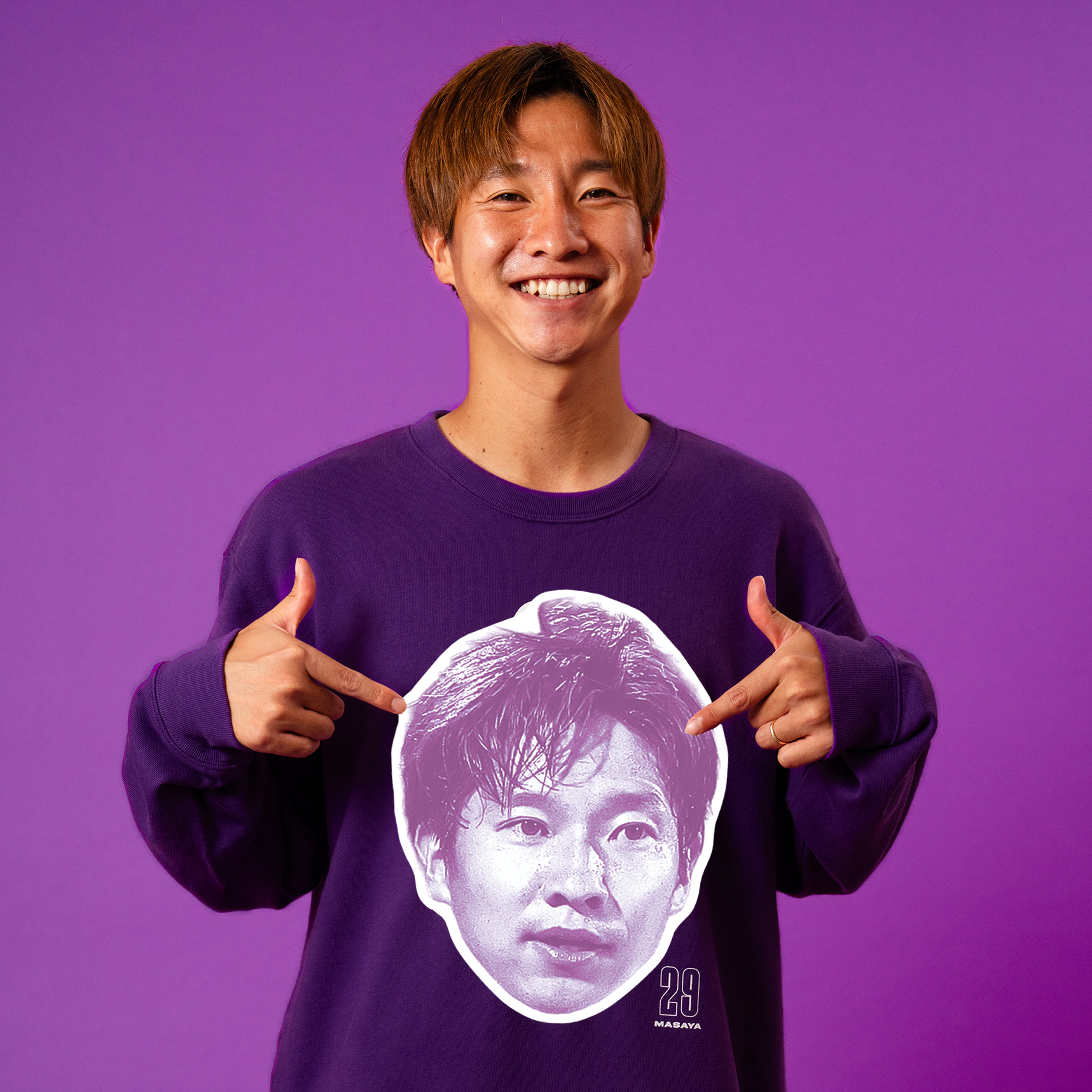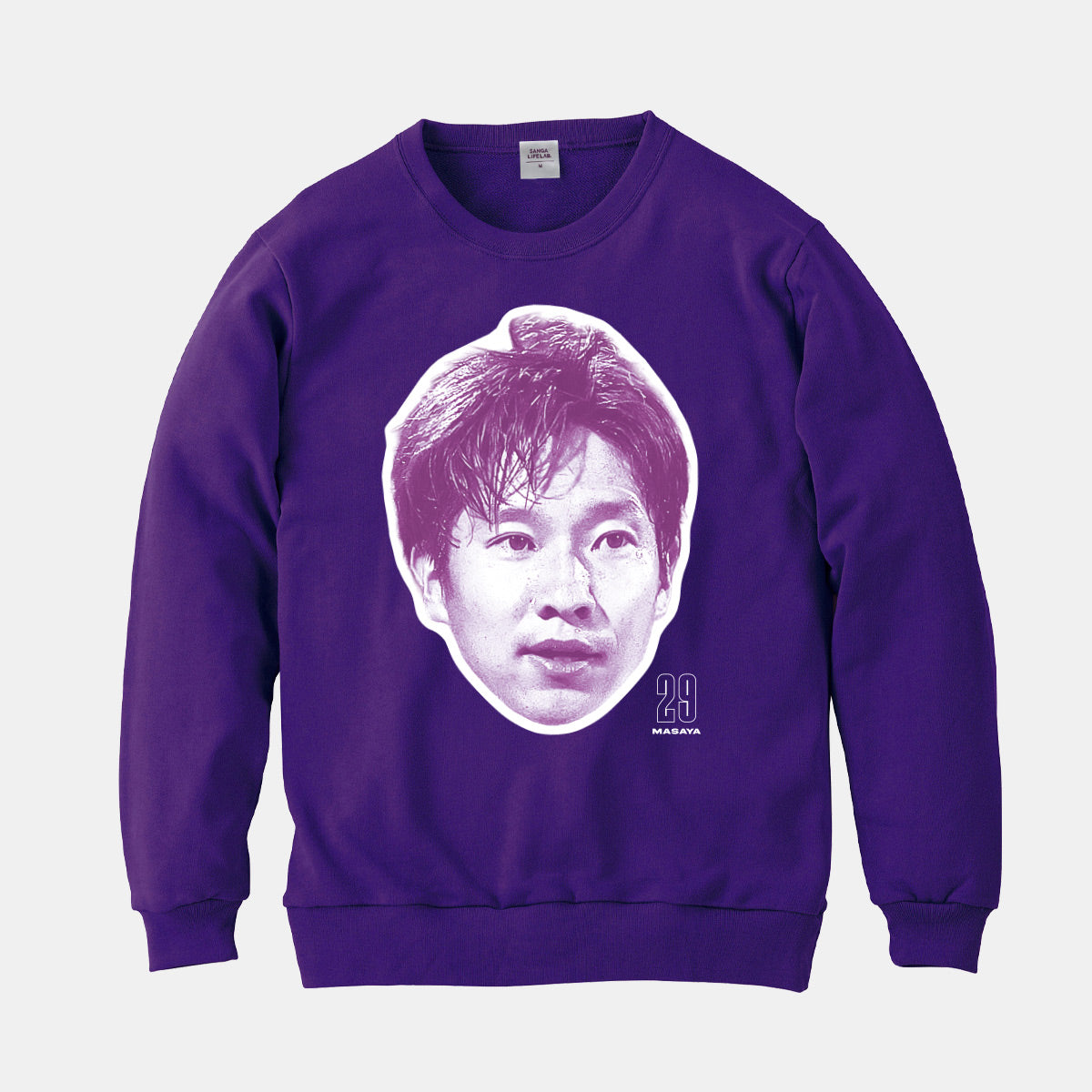 SANGA CORE&スタジアム受取先行!今こそ選手にエールを!CORE推し活トレーナー選手の顔が大きくデザインされた、ゆるっと着れるトレーナーが登場。推し活にぴったりの目立ち度◎のアイテムです。3サイズとも少し大きめサイズなので、ユニフォームの上からも着ていただけます!今こそ選手にエールを送ろう!